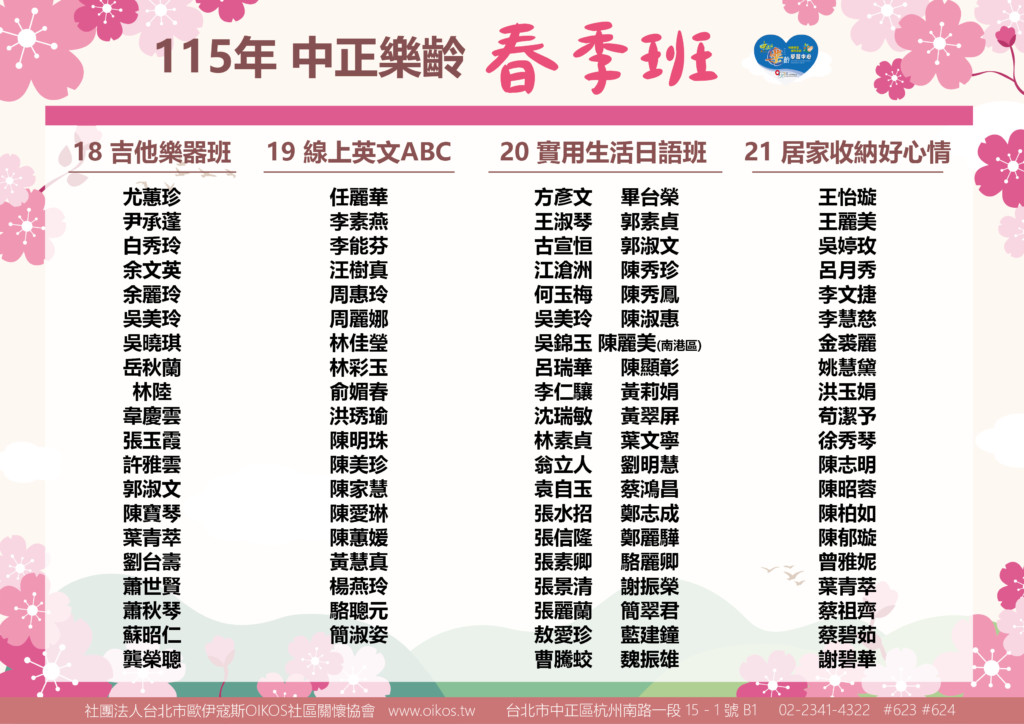 提醒:春季班網路報名已截止,仍欲報名者請於實體報名期間至現場辦理。更多詳情請參閱現場報名