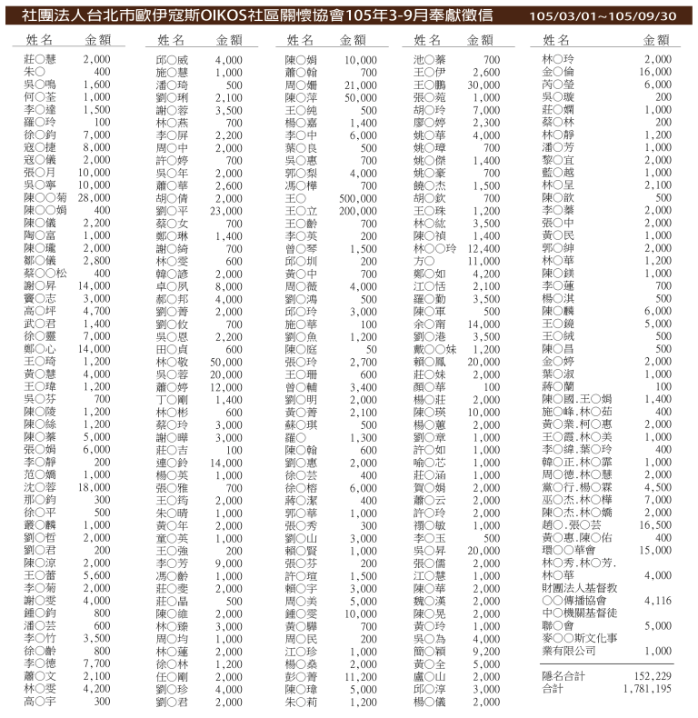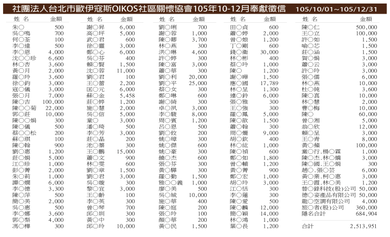 2016奉獻徵信