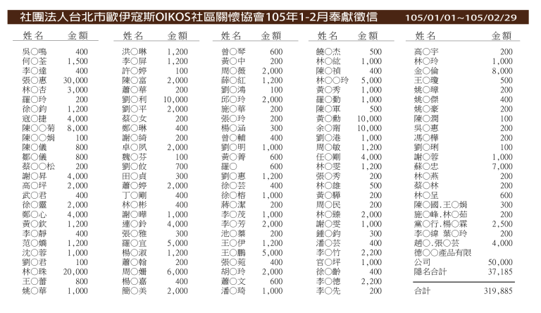 2018奉獻徵信