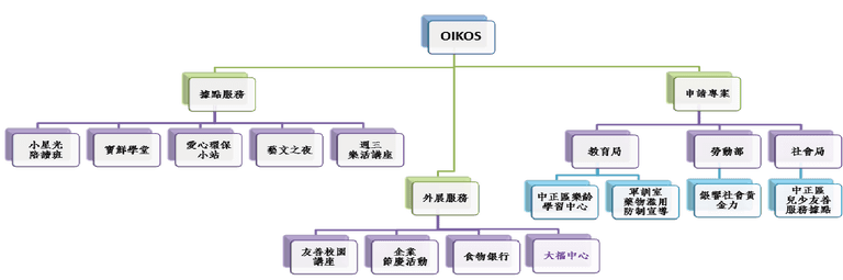 因著家的概念,OIKOS的服務觸及孩童、青少年、上班族以及樂齡族,